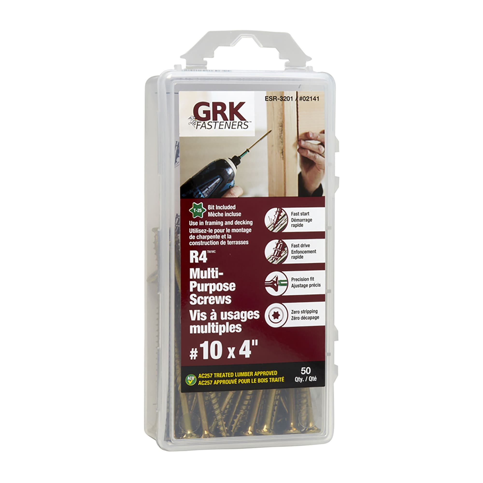 Framing/Decking Screw, GRK R4, #10 x 4", Torx Head, Climatek, 50/pkg