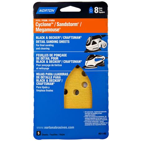 Sanding Sheet, fits "Mouse"-style Sander, Hook & Loop, 120g, 5/pkg, Norton