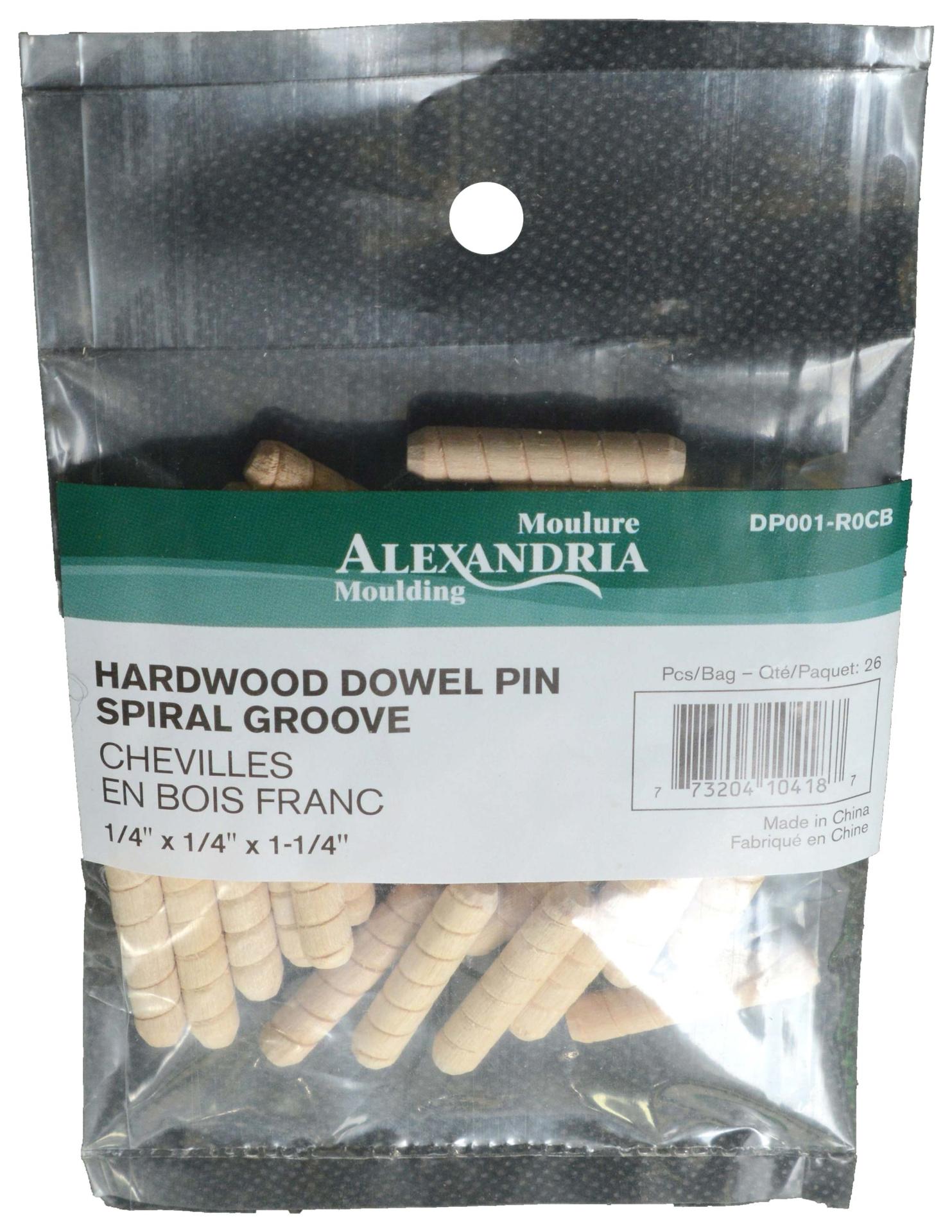 Dowel Pin, Wood, Spiral, 1/4" x 1 1/4", 26/pkg