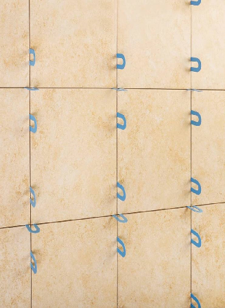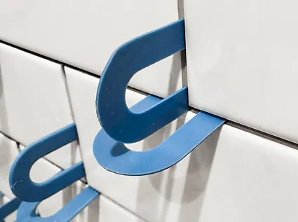 Horseshoe shims for aligning marble, granite, porcelain and large format tiles.