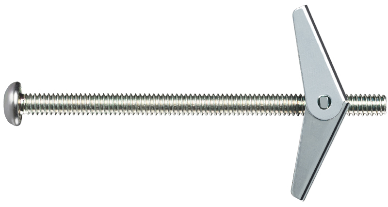 Toggle bolts have spring-loaded wings and are intended to fasten into hollow walls, such as through drywall, lath/plaster and hollow block.