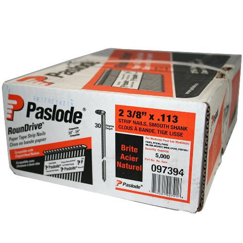 Strip Framing Nails, 2-3/8" x .113, 30-Degree, Ring Shank, Brite, 5000/box (Paslode) Product Code: 097397 $157.99 Each Add to Cart