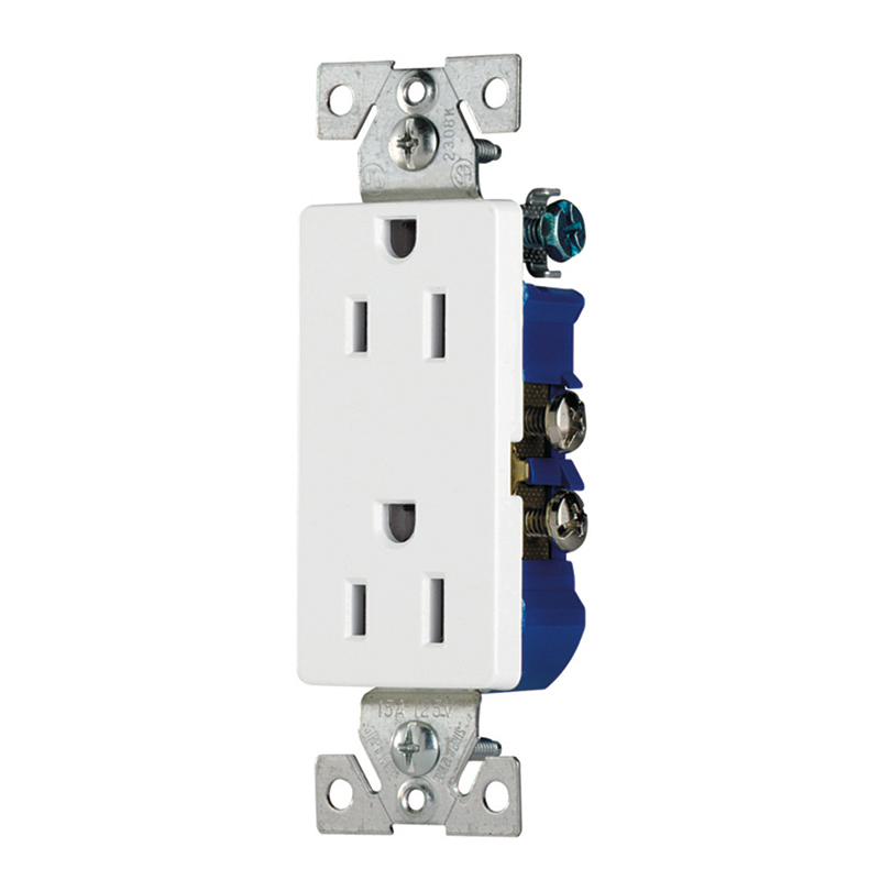 Receptacle, Duplex, Decora Standard, WHITE, 15 amp, 125 volt, 10/pkg Product Code: 1107WJP $14.99 Each Add to Cart
