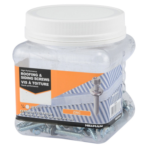Roofing Screw, #10 x 2", Zinc-Plated, 100/pkg