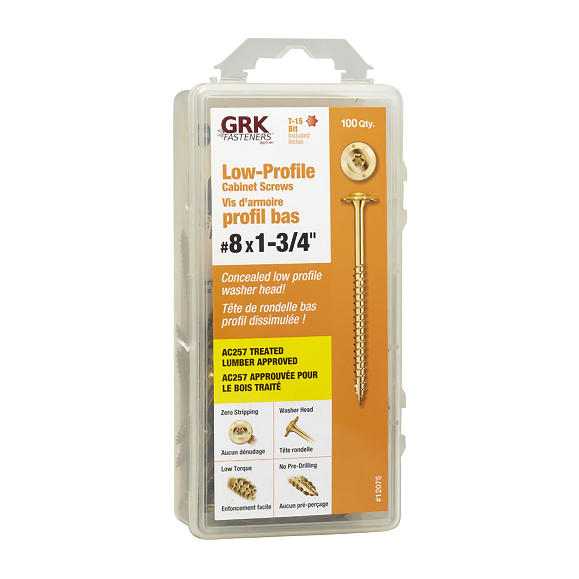 Trim/Cabinet Screw, #8 x 1-3/4", GRK, Torx Washer Head, 100/pkg