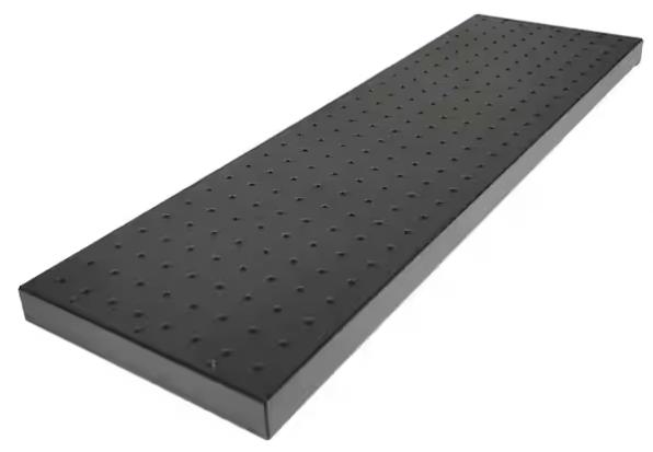 Steel stair tread 36 in length and 11 in depth with non-slip surface. Easy undermount installation, all holes are pre-drilled, bolts are included. Maintenance free. Designed to be installed on Pylex steel stair stringers, these treads can however be adapted to all types of stair stringers.