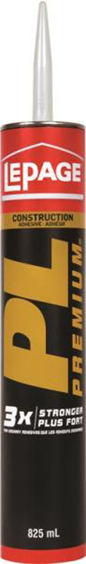 LePage PL Premium Construction Adhesive is a strong, versatile, and paintable adhesive that bonds almost any substrate permanently.