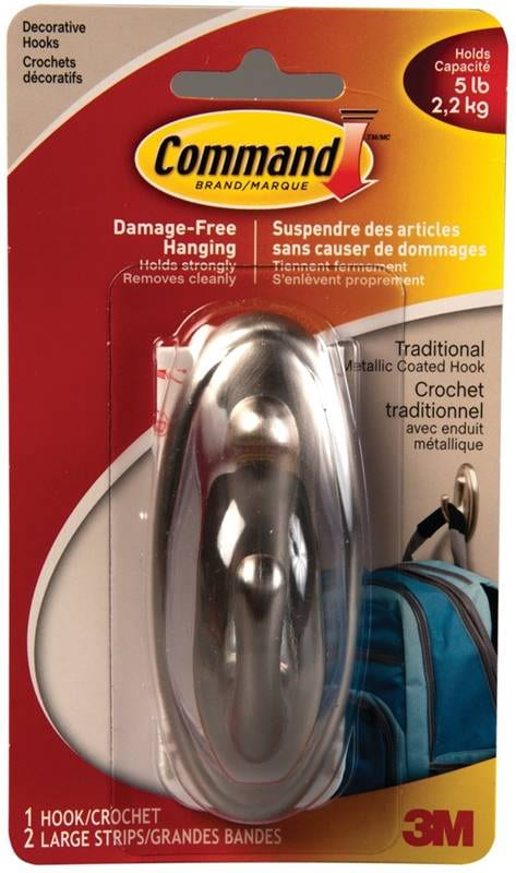 Hook, Self-Adhesive, Large, 3M Command, Traditional BRUSHED NICKEL, 1/pkg (5 lb capacity)