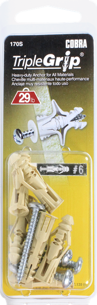 Designed with two expandable wings that grip tightly behind the drywall for a maximum holding power.