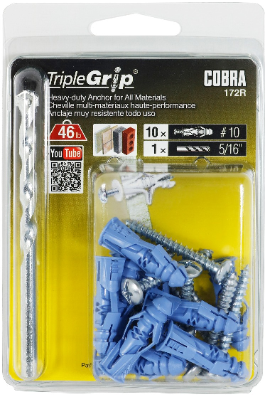Screw Anchor, Triple Grip, Plastic, with #10 Screws & Drill Bit, 10/pkg