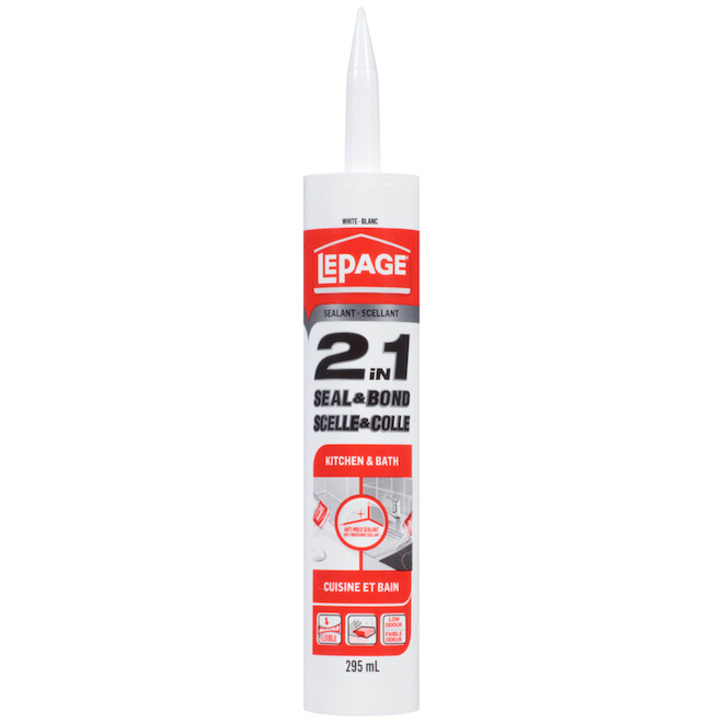 LePage 2 in 1 Seal & Bond Kitchen and Bath Adhesive is a premium adhesive that’s specifically designed for sealing projects in your kitchen and bathroom.