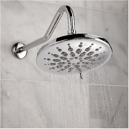 Generously sized 9" diameter rain shower for exceptional water coverage