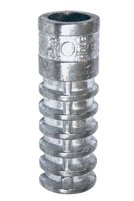 Zinc anchor with internal thread for lag bolt Installs flush to surface