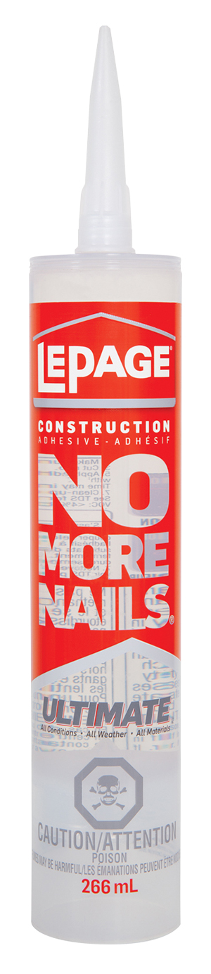 LePage No More Nails Ultimate Construction Adhesive is a high-quality interior/exterior construction adhesive that delivers crystal clear results in most applications