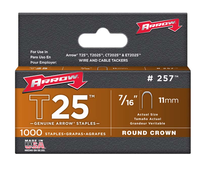 Staples, Arrow, T-25, 7/16", Round Crown, 1000/pkg