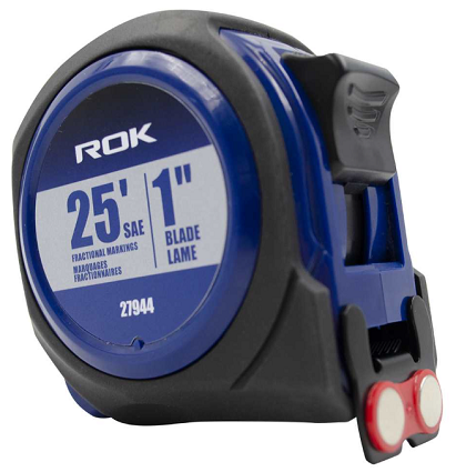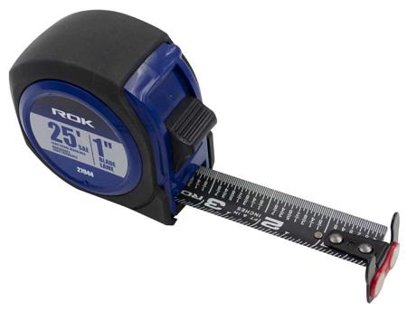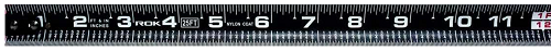 This tape features a blade that is printed on both sides with a high-visibility white on black scale.