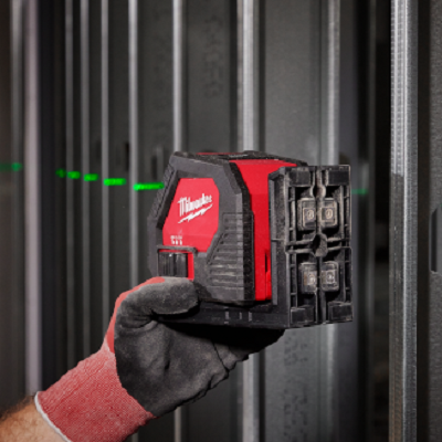 The MILWAUKEE Green Cross Line Laser provides 8+ hours of runtime for all-day brightness and is powered by (4) AA batteries. The high-intensity laser beams allow you to see the green lines up to 100' for fast and accurate leveling and alignment.