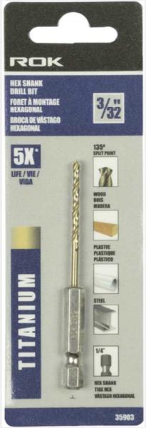Drill Bit, Hex Shank, 3/32" dia, ROK Titanium