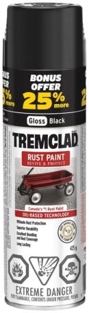 Rust Paint, 3x Turbo Spray, GLOSS BLACK, 680 gram spray, Tremclad