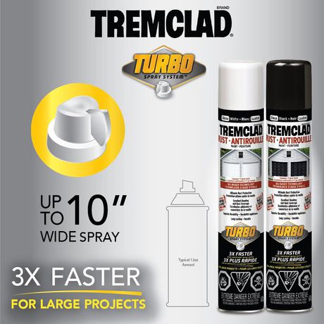 The trusted long-lasting durability of Tremclad Rust Paint with the Innovative Turbo Spray System to unleash 3X more paint per second. Now you can tackle your largest projects faster and easier than ever.