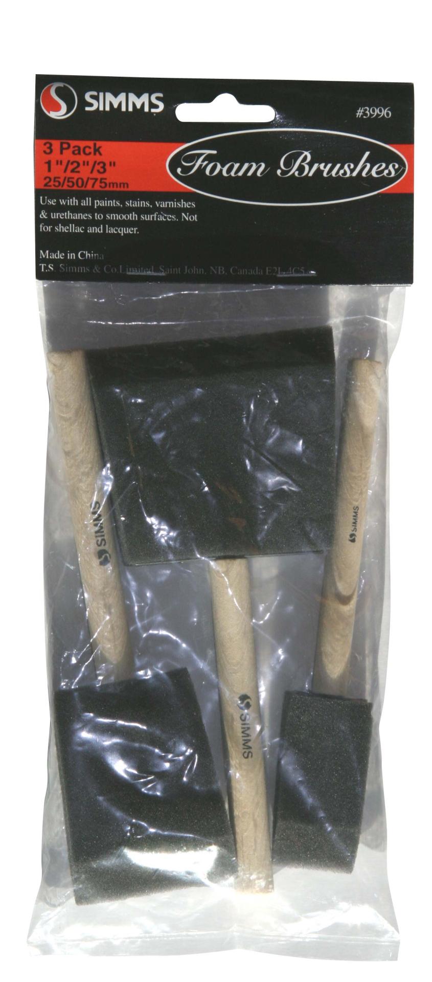 Paint Brush Set, High Density Foam, Wood Handle, 3pc