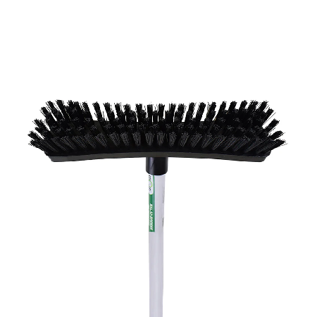 Ideal for cleaning decks or other hard suurfaces, this bri=ush and handle combo can be used wet or dry.