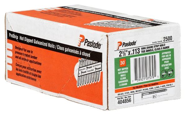 Strip Framing Nails, 2-3/8" x .113, 30-Degree, Ring Shank, Galvanized, 2500/box (Paslode)