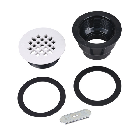 Designed for use with preformed shower stall bases, this drain is made of durable ABS plastic and comes complete with a white plastic strainer.