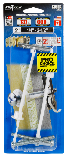 Flip Toggle Anchor, 1/4", 2/pkg, Cobra