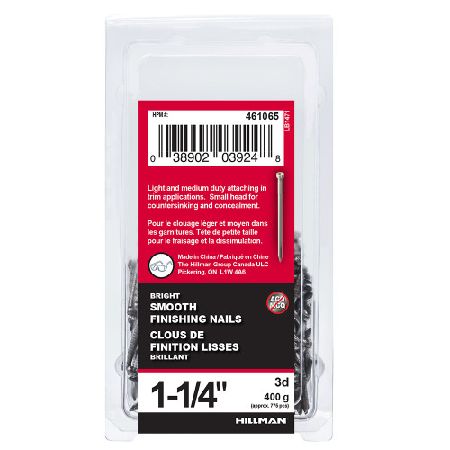 Nails, Finishing, 1-1/4", Brite, 400g/pkg