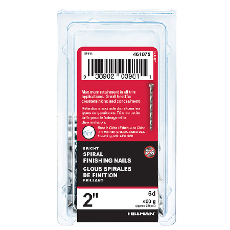 Nails, Finishing, 2" Ardox Spiral, Brite, 400g/pkg
