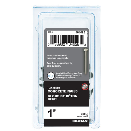 A concrete nail should be long enough to embed approximately 1" into concrete