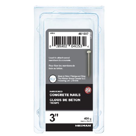 A concrete nail should be long enough to embed approximately 1" into concrete