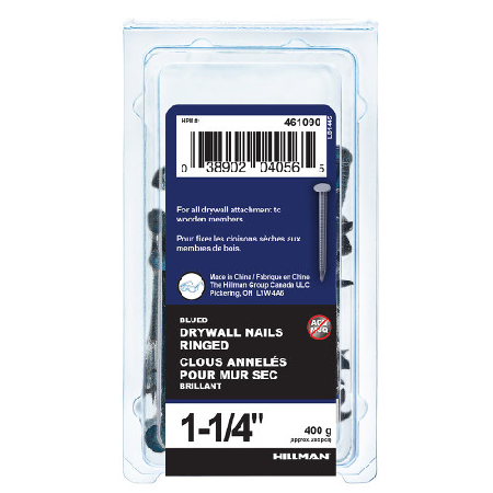 Nails, Drywall, Grabber, 1-1/4", Ringed, Blued, 50lb/ctn Product Code: GRAB114N $99.99 $49.98 Each Add to Cart