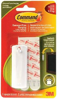 Hook, Self-Adhesive, Sawtooth Picture, 3M Command, WHITE, 2/pkg (5 lb capacity) 17040C