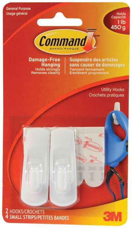 Hook, Self-Adhesive, Small, 3M Command, WHITE, 2/pkg (17002C) 1 lb capacity