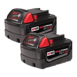 Battery for Cordless Tools, M18 Red Lithium, XC 4.0 amp-hours, 2/pkg, Milwaukee