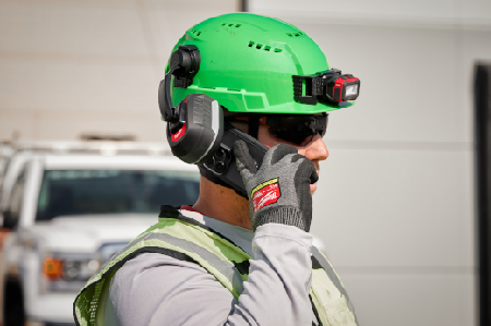 Secures into Milwaukee safety helmets and hard hats BOLT and universal accessory slots