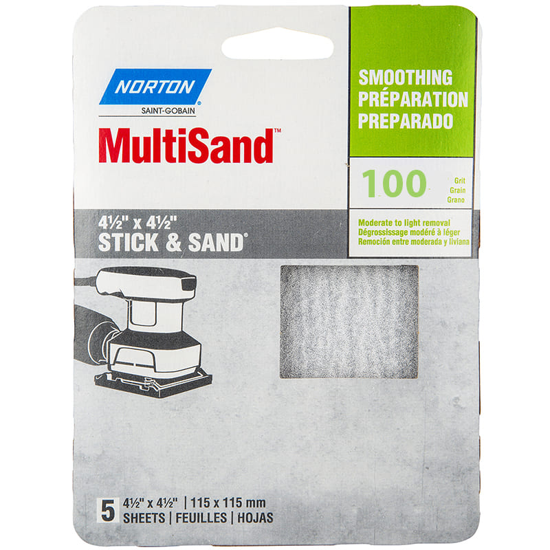 Sander Sheet, 4 1/2" X 4 1/2" x 100 Grit, 5/pkg, Norton (05452)