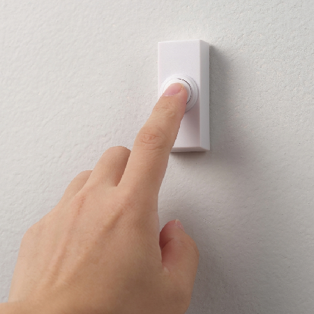 Wireless door chime kit that installs quickly and easily with no wiring.