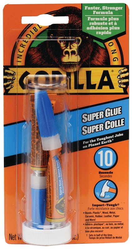 Its high strength and quick set time make Gorilla Super Glue the go-to adhesive for a variety of household projects. . In addition to Gorilla Super Glue's high-performance cyanoacrylate formula, we've added an anti-clog cap with a metal pin inside ensuring an airtight seal for maximum reusability. It's Gorilla tough, every time.>
