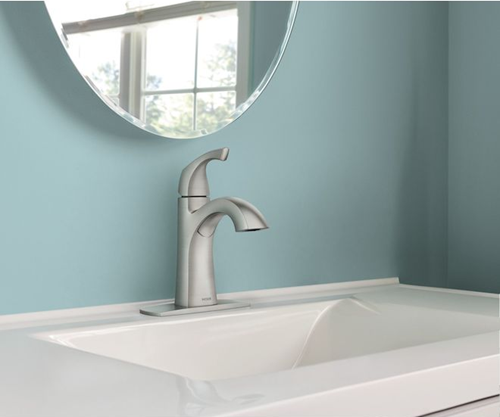 Lavatory Faucet, Single Lever Handle, with Push Drain, BRUSHED NICKEL, Moen LINDOR