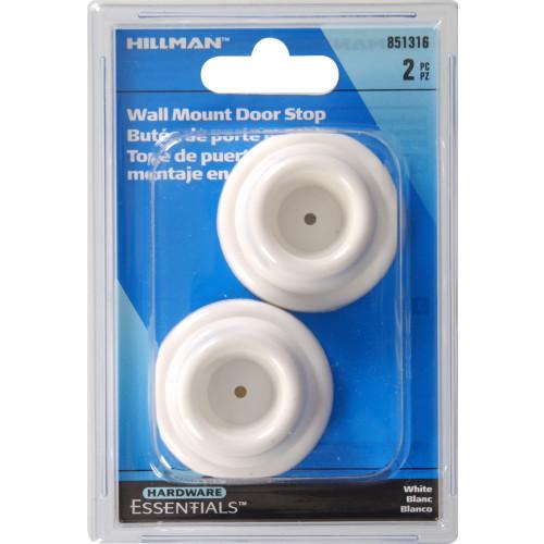 Door Stop, Wall Mount, 1-7/8", Self-Adhesive, WHITE, 2/pkg