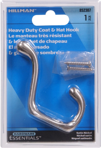 Coat/Hat Hook, Heavy Duty, SATIN NICKEL, 1/pkg