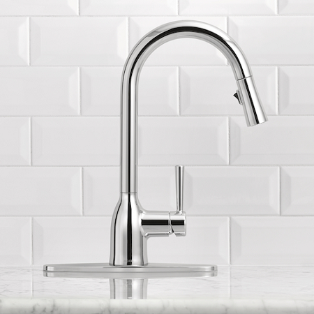 Pulldown hose offers flexible water delivery and hose retracts with ease