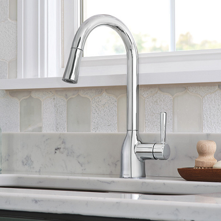 Equipped with the Reflex system for smooth operation, easy movement and secure docking of the pulldown/pullout spray head faucet