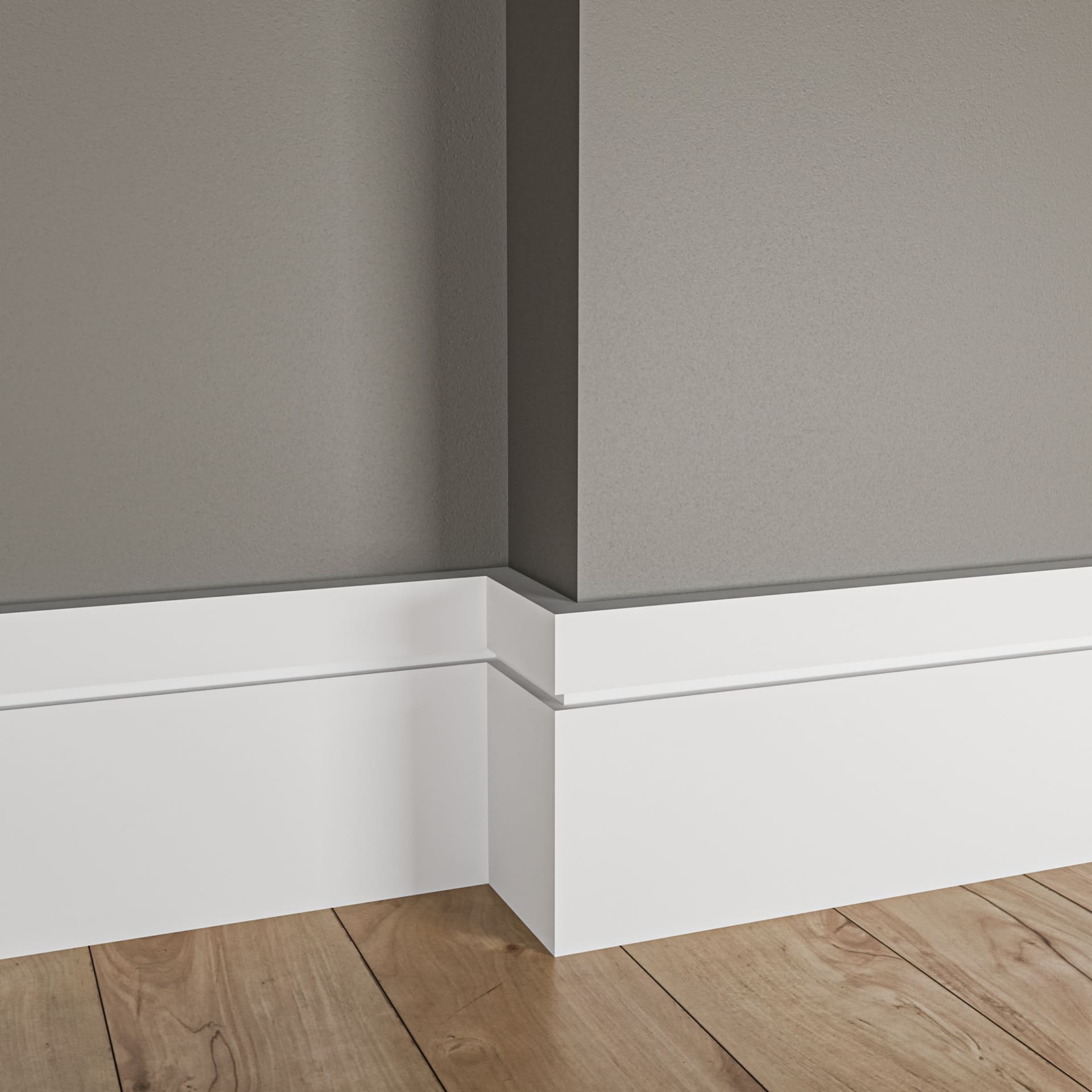 Baseboard, MDF Primed, 1/2" x 5" x 8 foot, SQUARE GROOVE