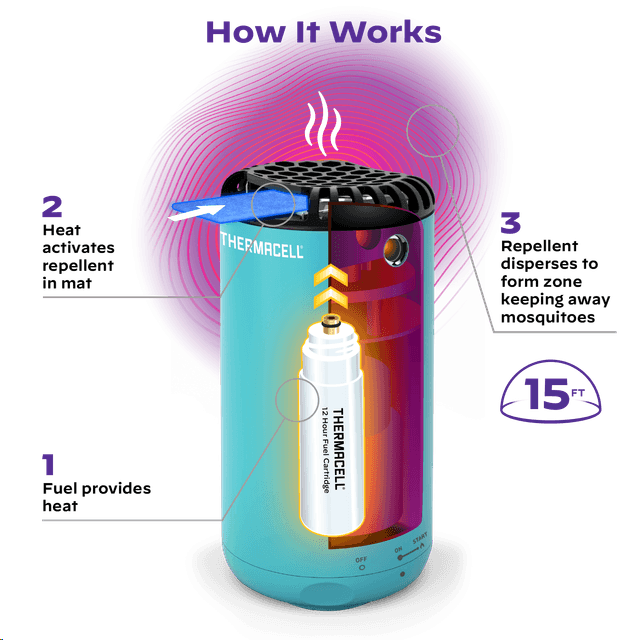 Includes: One repeller, one 12-hour fuel cartridge, and three 4-hour repellent mats.
