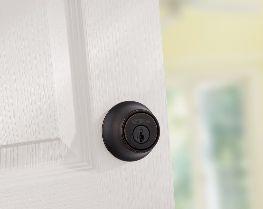 Elements by Weiser® provides an expanded choice styles and finishes at an affordable price. This single cylinder deadbolt can be locked or unlocked by a key on the outside, or the turn piece on the inside.