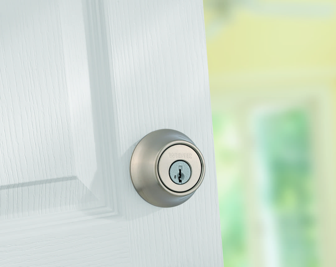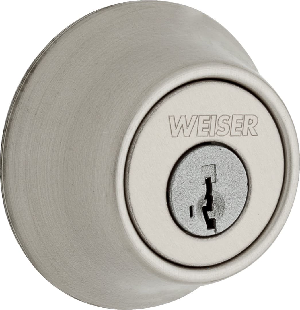 Elements by Weiser® provides an expanded choice styles and finishes at an affordable price. This single cylinder deadbolt can be locked or unlocked by a key on the outside, or the turn piece on the inside. The crisp, clean appearance of the Satin Nickel finish adds to the overall look of the product and brings a modern feel.